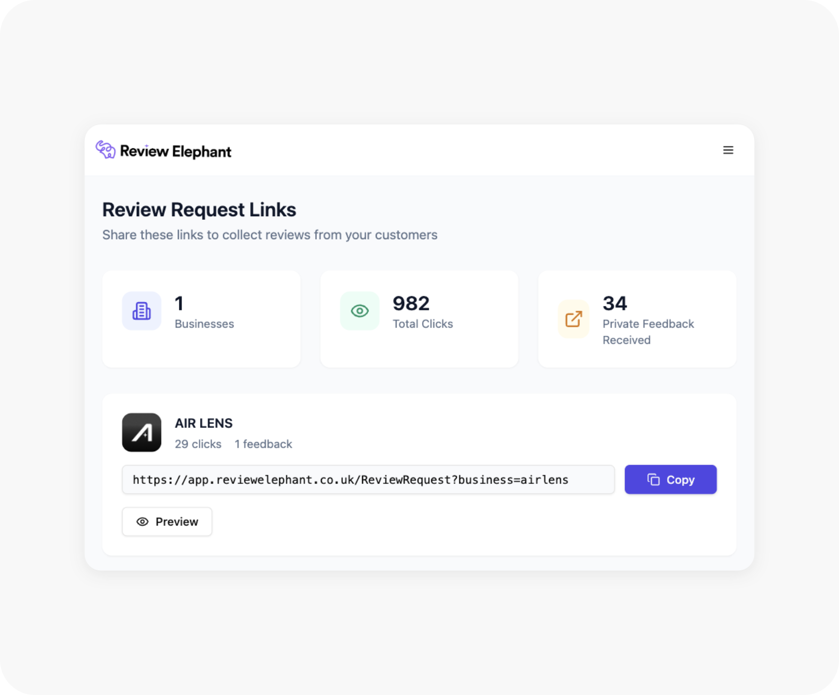 Your link redirects to your chosen review platform after feedback analysis, it’s immediate plug and play.