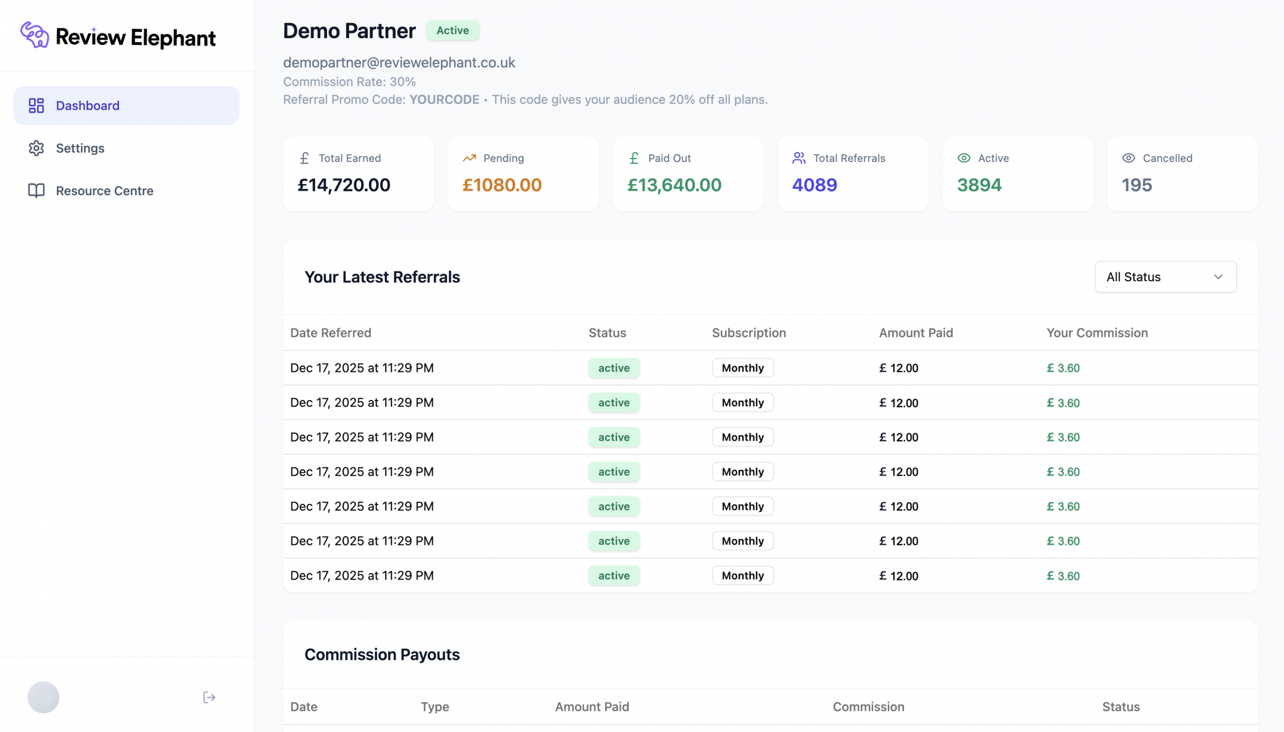 You will be able to track every referral you convert, and revenue you earn in one dashboard.
